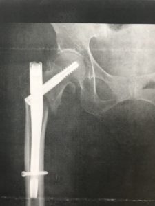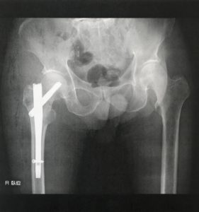 ※ちなみに、診断名は大腿骨転子部骨折です。ただ線だけを見ると頚部にもあるか?というニュアンスですね。