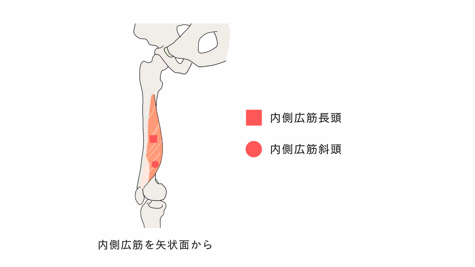 このように内側広筋は近位部を内側広筋長頭、遠位部を内側広筋斜頭と区分されています。