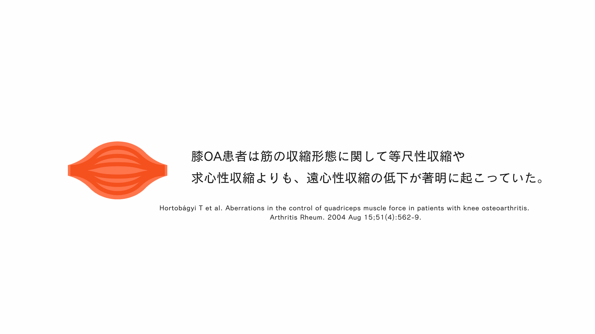 この外部膝関節屈曲モーメントに対して、大腿四頭筋は遠心性収縮が求められています。